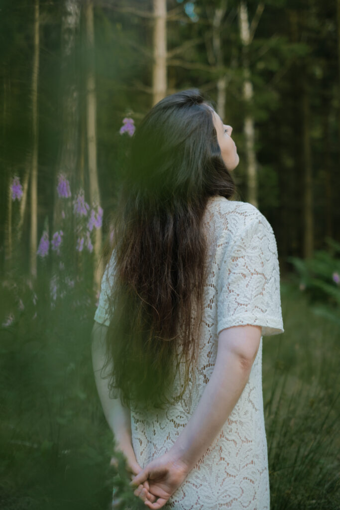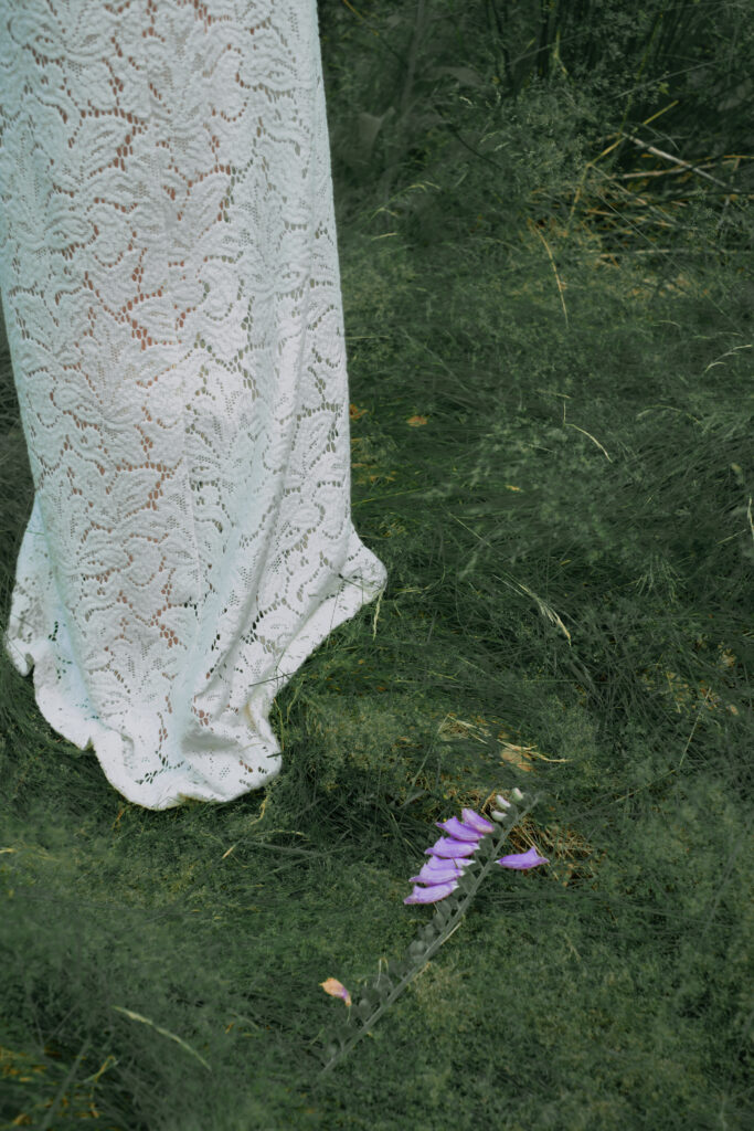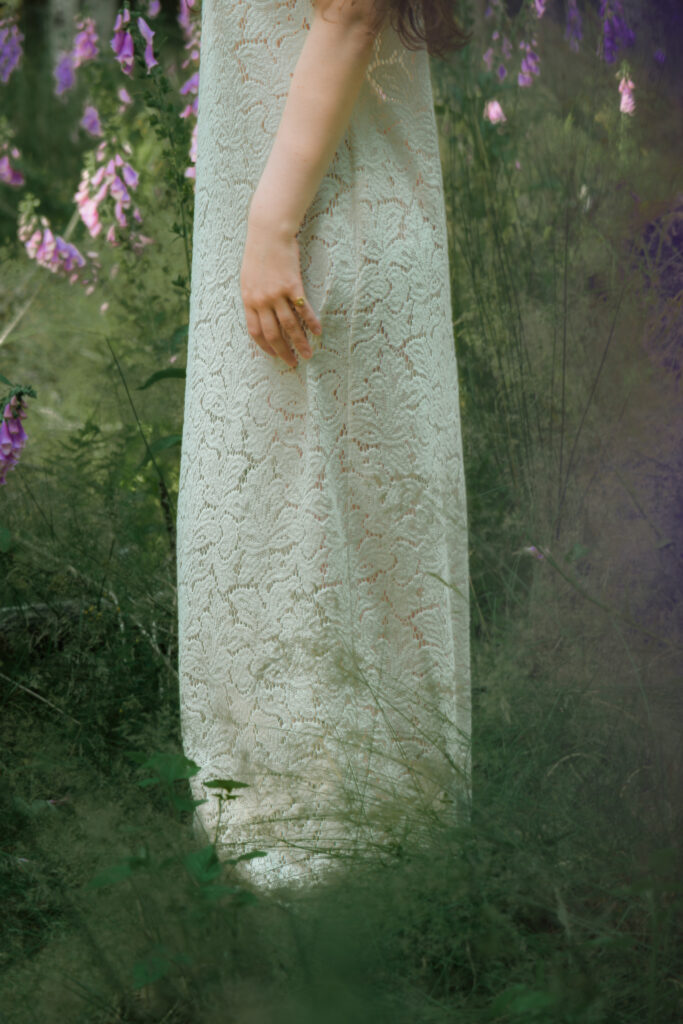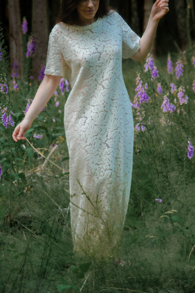 Une tenue qui invite à la curiosité avec sa transparence, mais qui ne dévoile rien grâce au dessin dense de la dentelle. Cette robe est faite pour la femme gracieuse qui souhaite être à l’aise et libre dans ce qu’elle porte.